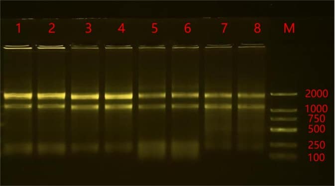 The value of A260/A280 was 1.86-1.96, and the value of A260/A230 was above 1.75, which proved that the purity of the extracted product was high; different animal tissue samples had bright bands and good integrity.