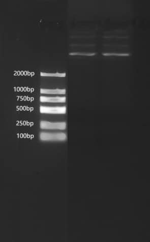 Note: the original concentration of 6 μL on the sample electrophoresis, agarose gel concentration of 1%, 120 V electrophoresis.