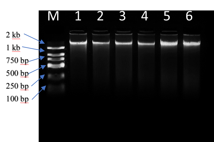 The electropherogram is as follows (gel concentration 1%, sample volume 6µL):