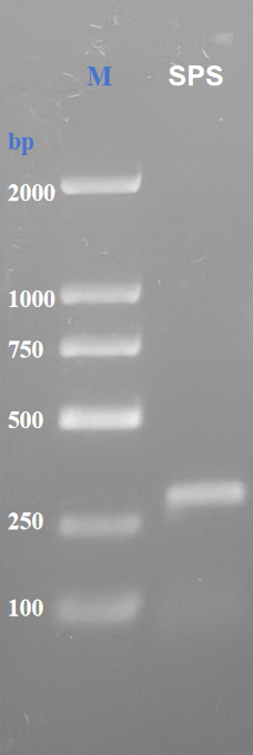 PCR amplification was performed using extracted rice seed genomic DNA as the template. The target product, SPS (sucrose phosphate synthase gene), has a size of 287 bp. The amplification reaction consisted of a 50 μL system with 200 ng template DNA and a primer annealing temperature of 60°C. Following amplification, 3 μL of the product was subjected to nucleic acid electrophoresis using DL 2000 as the marker. under conditions of 120 V for 35 minutes. The electrophoresis results are as follows: