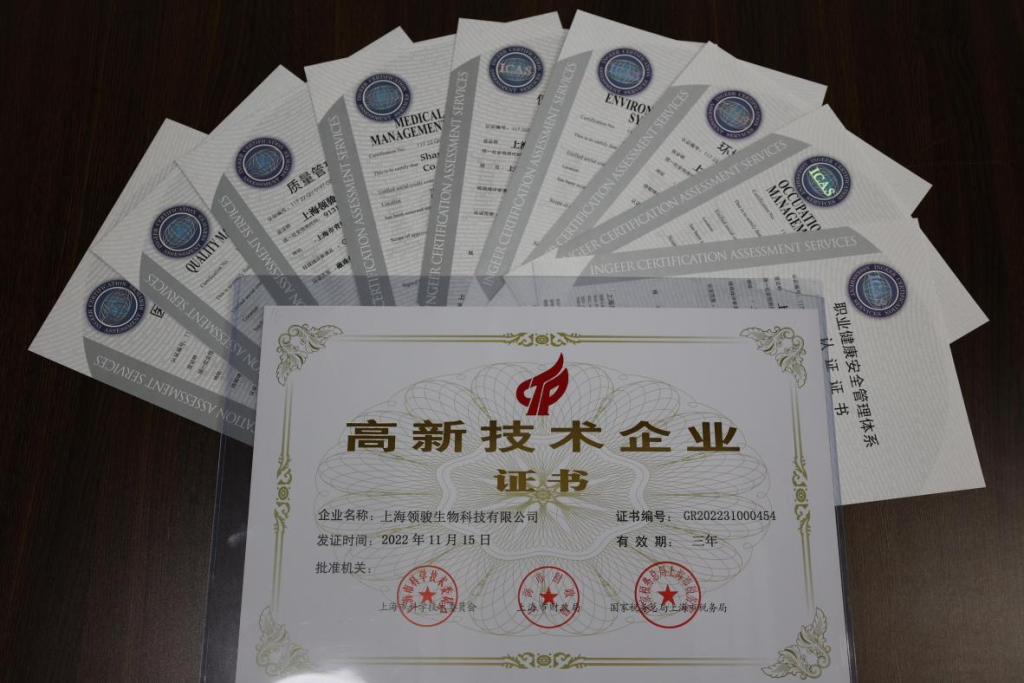 As a national high-tech enterprise and a specialized and special new enterprise in Shanghai, Shanghai Lingjun Biotechnology Co., Ltd. has passed the ISO9001:2015 quality management system certification.
